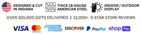 The personalization preview for each of our signs will provide you with the exact text that will appear on your finished product. What you see in the preview is exactly what you will receive. (no emojis or emoticons).Certain punctuation such as hyphens (dashes) will not appear on your final piece. We recommend periods or slashes in their place.